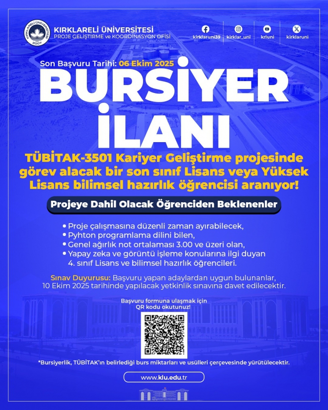 Kırklareli Üniversitesi Bursiyer İlanı