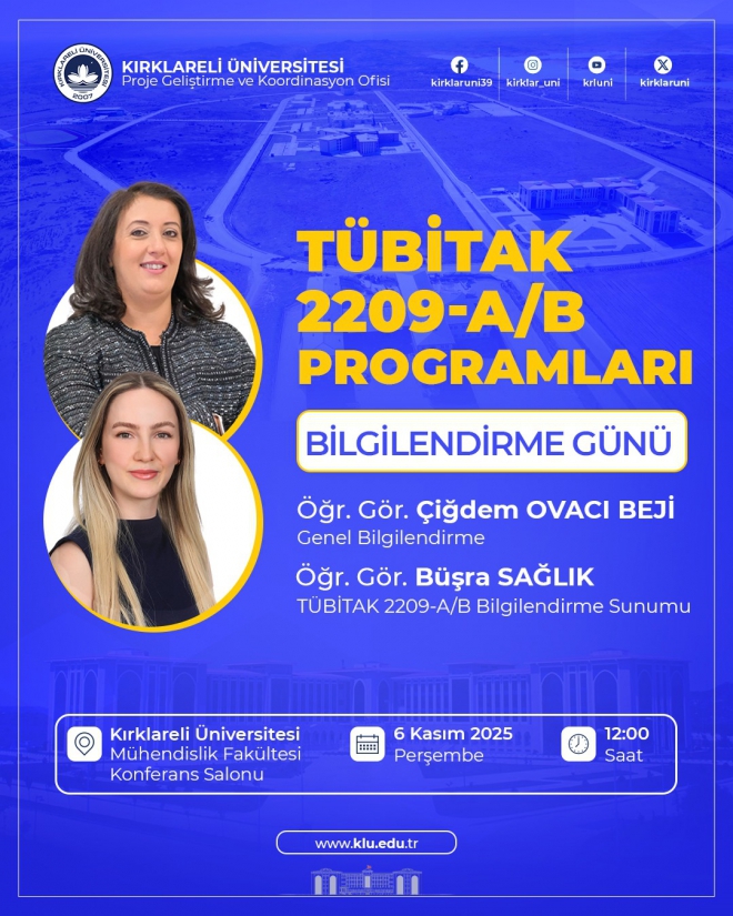 Etkinlikte, Öğr. Gör. Çiğdem Ovacı Beji tarafından genel bilgilendirme sunumu, Öğr. Gör. Büşra Sağlık tarafından ise TÜBİTAK 2209-A/B program başvuruları ve süreçlerine ilişkin bilgilendirme yapılacaktır.