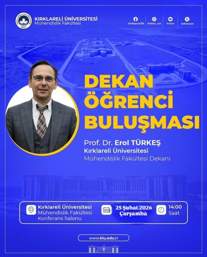 Etkinlik, 25 Şubat 2026 Çarşamba günü saat 14.00’te, Mühendislik Fakültesi Konferans Salonu’nda, Mühendislik Fakültesi Dekanı Prof. Dr. Erol Türkeş’in katılımıyla gerçekleştirilecektir.